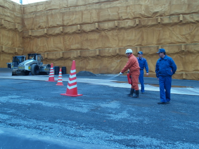 消火器の使い方での注意として、風上から風下へ消火器を向け、火元に向けて噴射をし、ほうきで掃く様な感覚で、消火器を操作すると良いと指導いただきました。